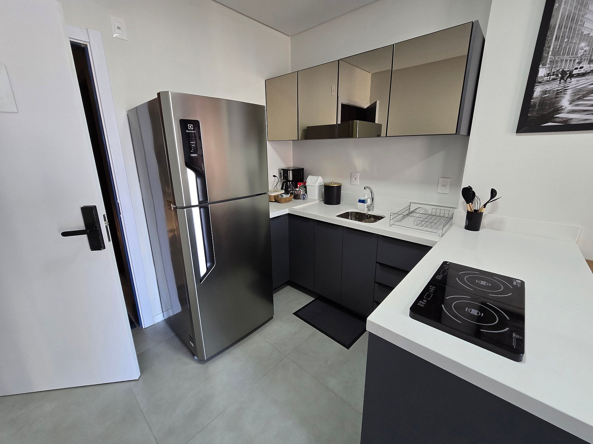 O flat se destaca pelo ambiente moderno, decorado com muito cuidado e pensado para oferecer conforto em cada detalhe. A climatização em todos os ambientes garante bem-estar em qualquer época do ano, enquanto a cozinha equipada permite uma estadia prática e funcional.